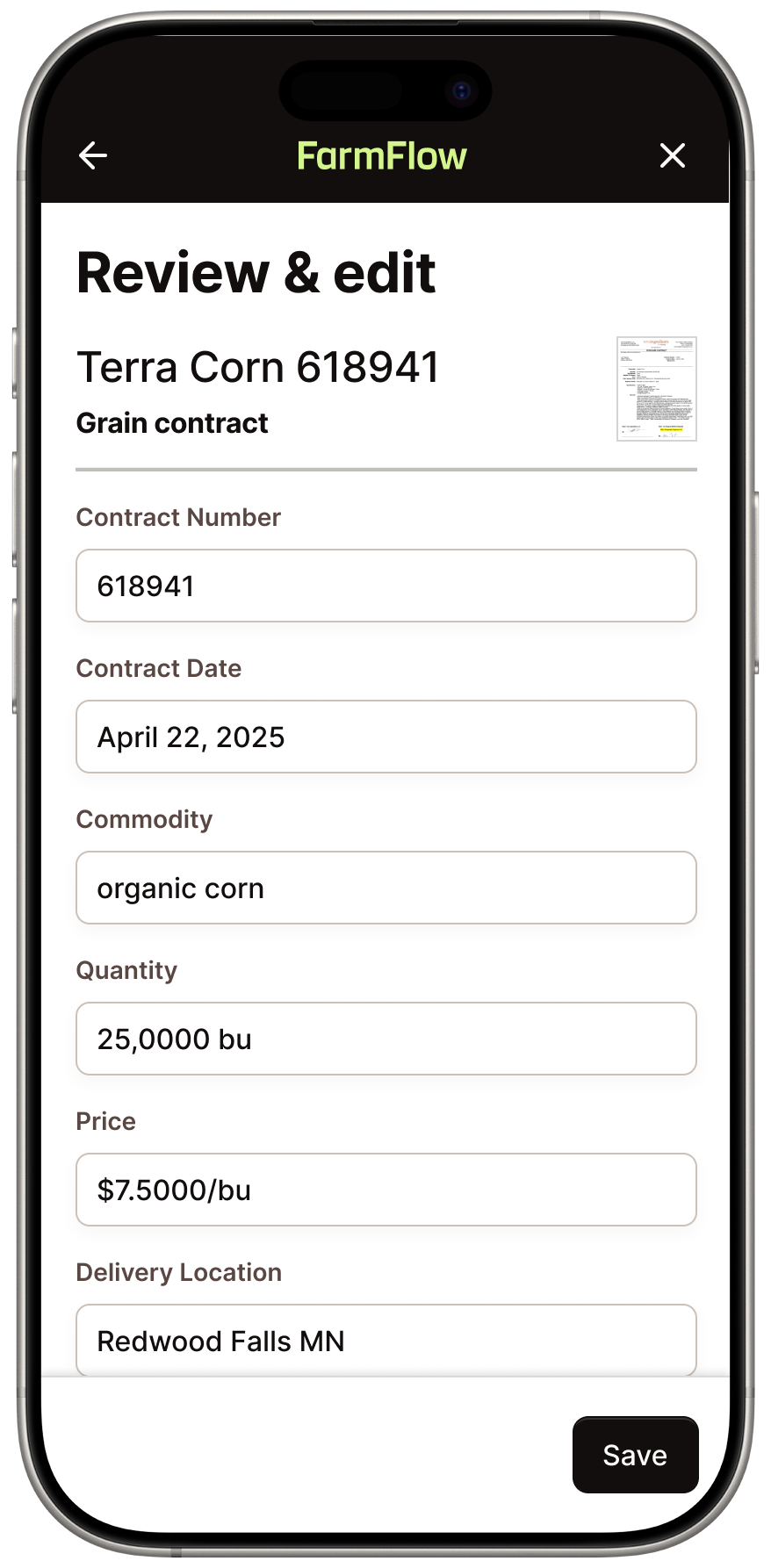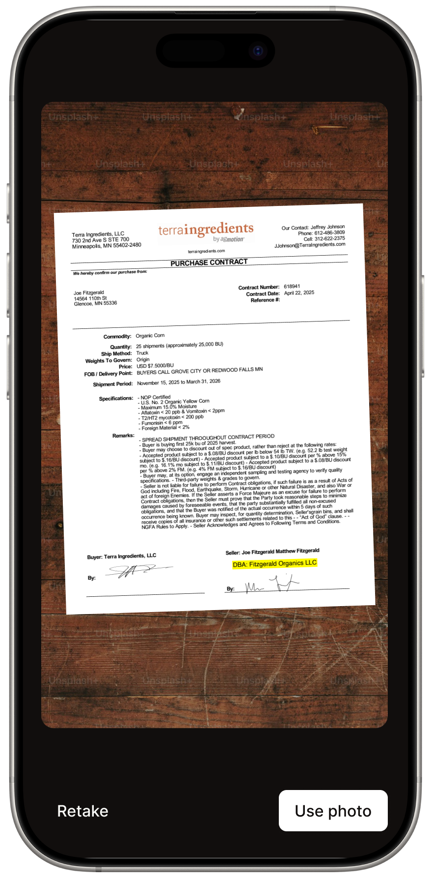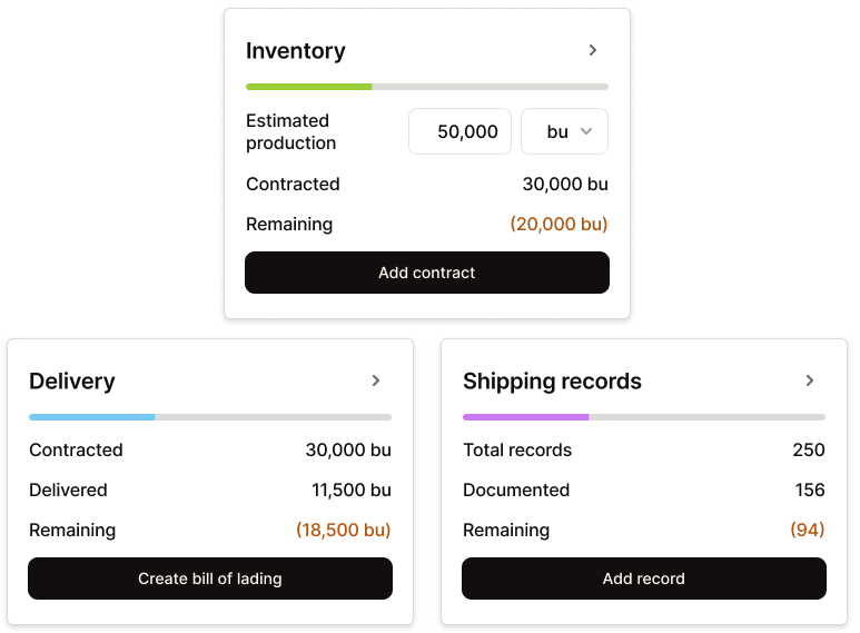 FarmFlow Track helps you organize grain contracts, generate Bills of Lading in seconds, and get everything ready for inspection.